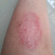 Obat topikal sempar dihentikan. 1 atau 2 bulan kemudian kembali diberikan obat terbinafin topikal, tidak asa perubahan malah semakin gatal. Diganti dengan ketokonazole, gatalnya tambah parah, sekarang pake miconazole lagi dgn merk kalpanax tapi tetap terlihat makin paeah dengan lesi membesar berupa makula eritem disertai squama serta ekskoriasi akibat kena garukan. Kulit terlihat kering disekitar lesi.