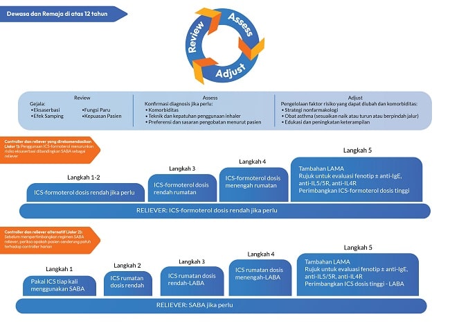 Gambar 1. Pendekatan Langkah Tata Laksana Asma pada Dewasa dan Remaja. (Sumber: GINA, 2021)